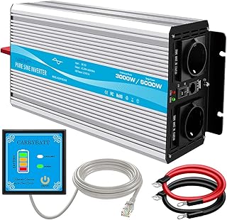 CARRYBATT Spannungswandler 12V auf 230V Wechselrichter Reiner Sinus 3000W mit 5 Meter Fernbedienung mit Dual-AC-Ausgängen & 2.1A USB-Anschluss-Spitzenleistung 6000 Watt