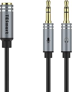 3,5mm Headset Splitter, TESmart Headset Adapter 2 auf 1(3,5mm TRRS Stecker auf 2X 3,5mm TRS Buchse), Y Splitter Audio Kabel mit Separater Kopfhörer & Mikrofon für PS4, PC, Laptop, und mehr - 0,35m