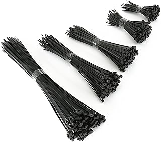 Tonsooze Kabelbinder Set, Stabiles Nylon Kabelbinder, UV Beständig Kabelbinder 500 Stck 100/150/200/250/300 mm zip ties Und 50 Kabelbinderhalter, kabelbinder schwarz, Hitzebeständig